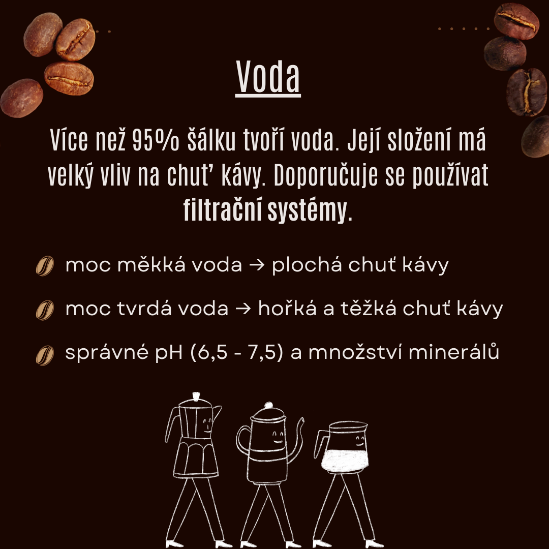 příliš kyselá voda → zvýrazňuje kyselost kávy, může chutnat ostře